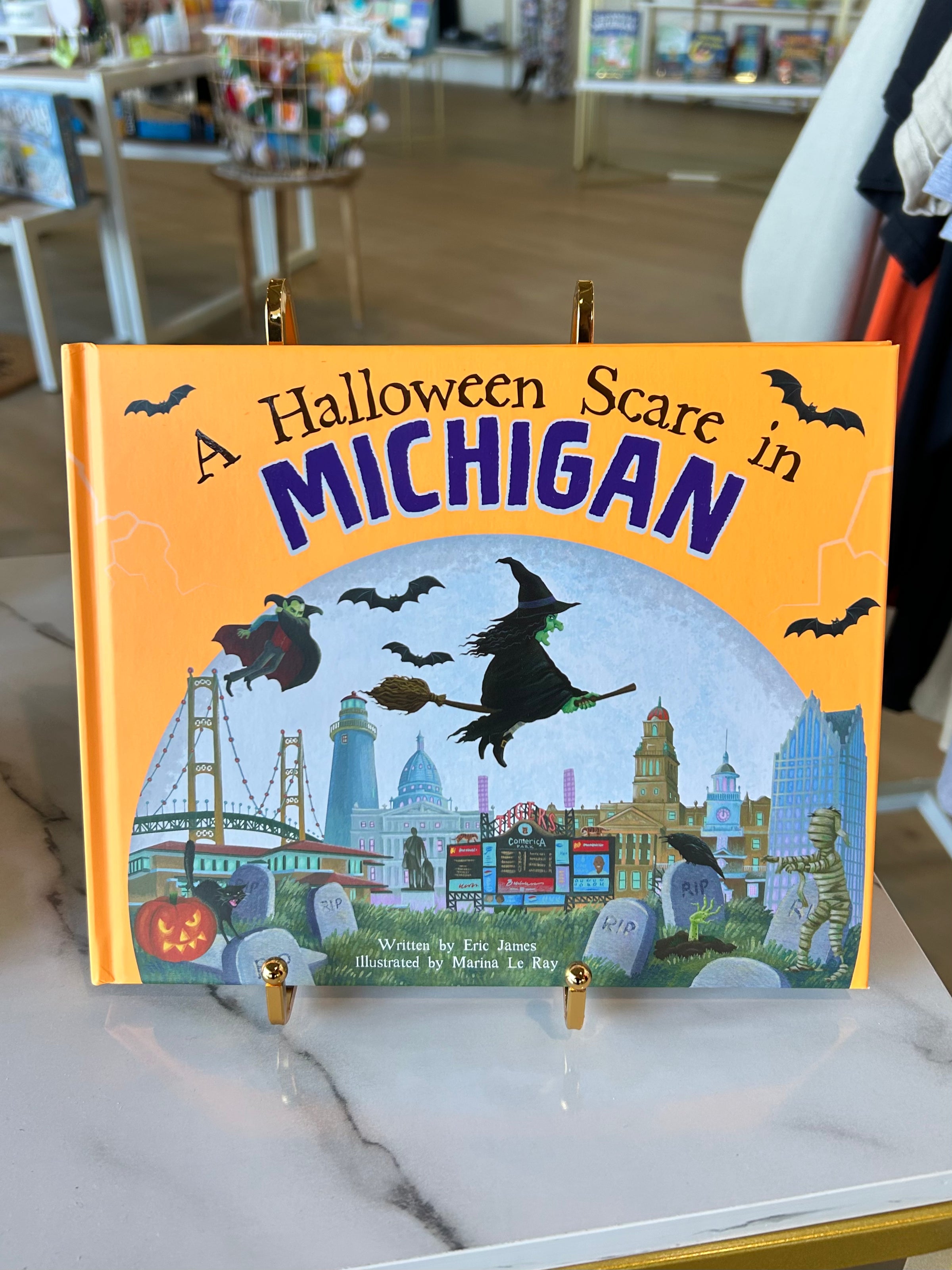 It's Halloween night, and creatures and critters from near and far are starting to gather outside the front door. And now here comes a whole army of monsters, on broomsticks, buses, and bikes, all clamoring in the darkness. What is it they want? Are they coming for you? A delightfully spooky Halloween adventure featuring iconic locations and landmarks from your favorite state: Michigan