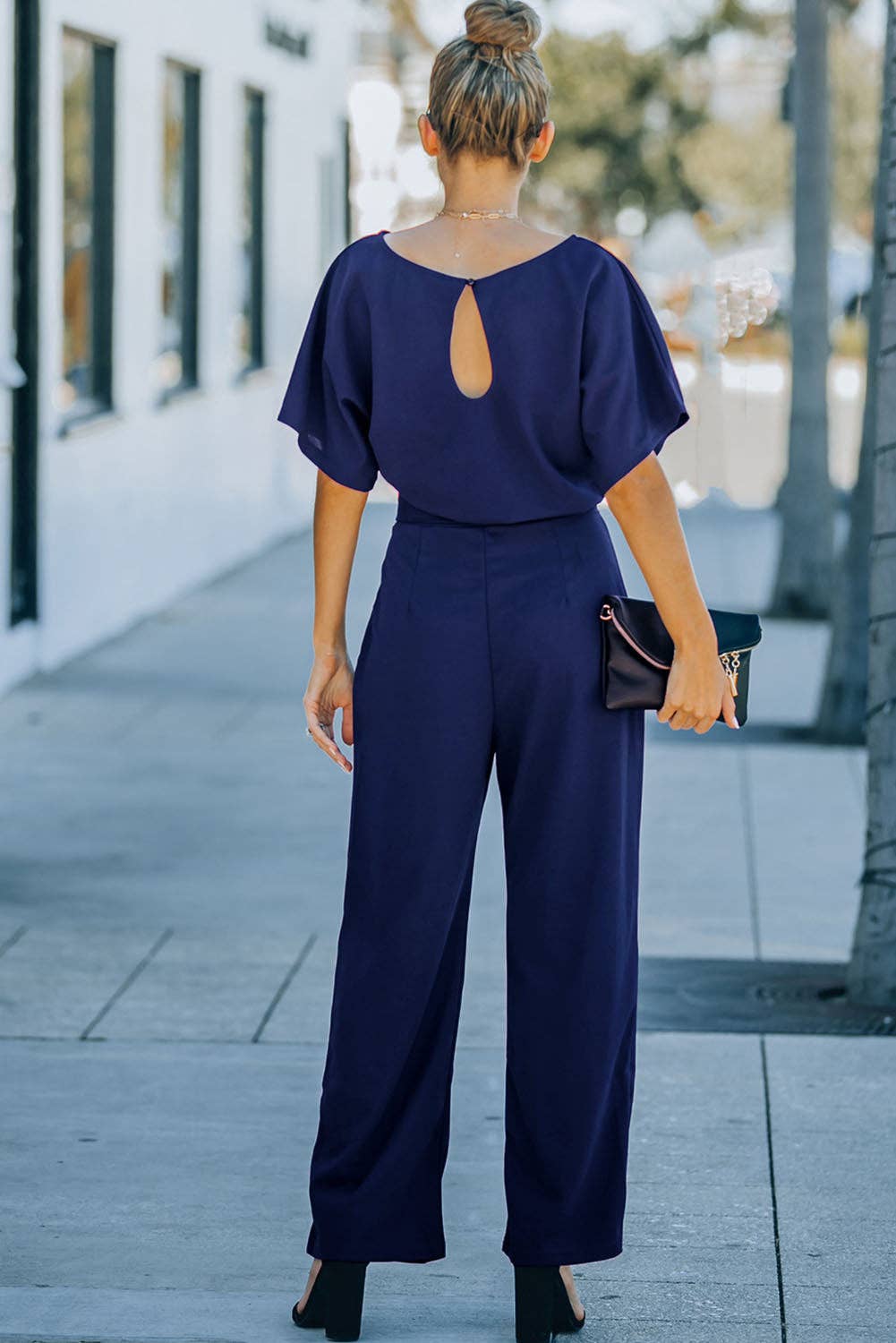 This solid color jumpsuit makes you oh so glam Made of a stretch fabric, it’s very friendly and cozy to wear. This jumpsuit for women features a tie waist belt, batwing sleeve and wide leg. Wear this jumpsuit with barely there heels and a red lippy to get a gorgeous look.